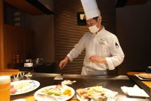 - 研修後にホテル内の鉄板焼屋さんで