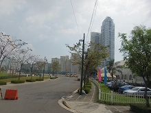 | 商業施設‘‘グリーンベルト”を見学しました。 | 1から5棟まであり、おしゃれなカフェや一流ブランドショップが建ち並んでいます。 |