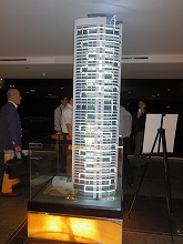| 良明さんは社を代表してかごのようなエレベーターで建設中の72階まで昇りました。スリル満点! | |