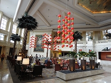 | なんだかんだ言っても仲良しです。 | 宿泊したペニンシェラマニラの豪華ロビー |