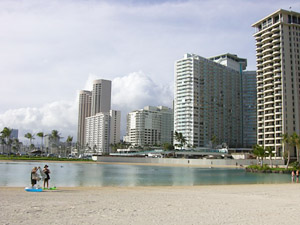 ワイキキはハワイ語で「水が涌く」の意味で、元々は湿地帯であり、18世紀末まではハワイ王朝の保養地でありました。