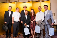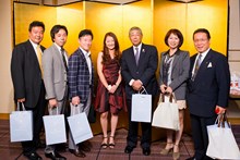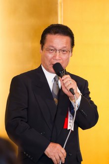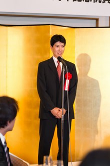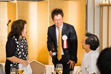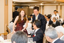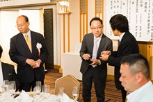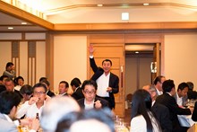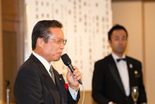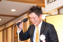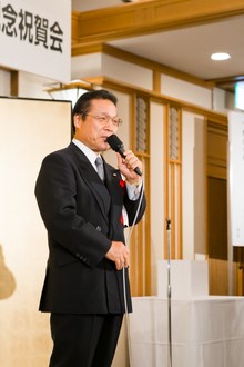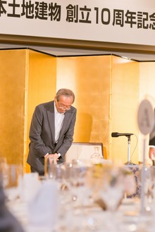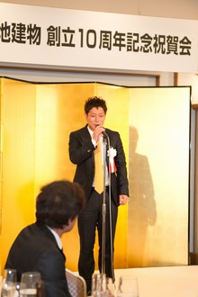 | 三菱東京UFJ銀行田町支社法人部長 吉田道隆様よりご祝辞をいただきました。 | 宅建協会の大先輩で東京JCの大先輩である 大瀧社長にもご祝辞をいただきました。 |