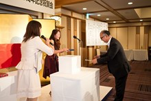 | 幸田社長にも引いていただきました。 | 大学のお友達の岩瀬さんも当たりました! |