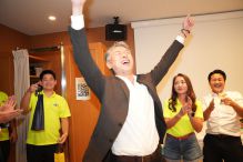 - 喜びのハイタッチ!