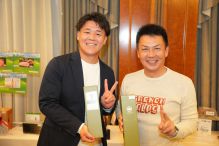 - 弊社からの協賛品①長崎和牛サーロインステーキ&②純米吟醸酒 紀土