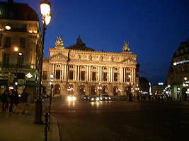 | オペラ・ガルニエ。現在は、おもにバレエの上演が行われています。右は夜のオペラ・ガルニエ。 | |