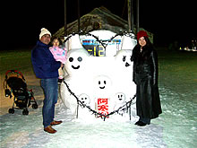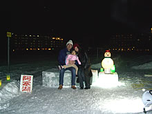 今回は滞在時間が短かかったので、次回はたっぷりライトアップされた雪像たちを眺めたいですね。彩女は、初めての雪に戸惑い、ずっと抱っこ!でパパはクタクタでした。