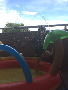 和田家ではついに、プール開きを行いました。
