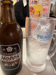 最近、友人に勧められてホッピーセットにハマっています。今までは飲まず嫌いで口にしてなかったのですが、飲んでみるとビールよりすっきりしていておいしい!カロリーもビールの約1/4らしいので、飲んだことない方はぜひ飲んでみてください!!